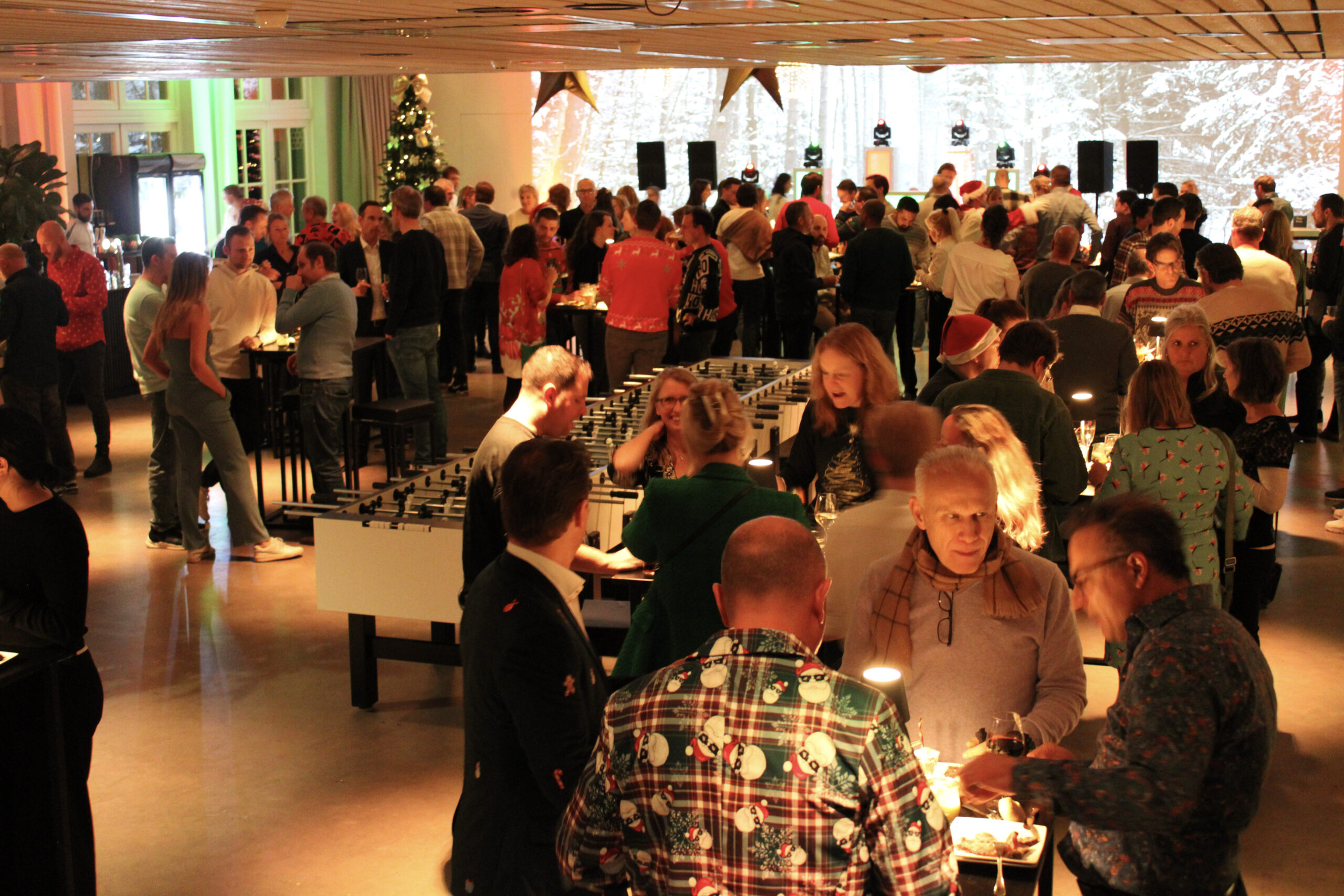 Ontvangst met prosecco & glüwein, XXL Tafelvoetbal, knallend winterfeest met DJ