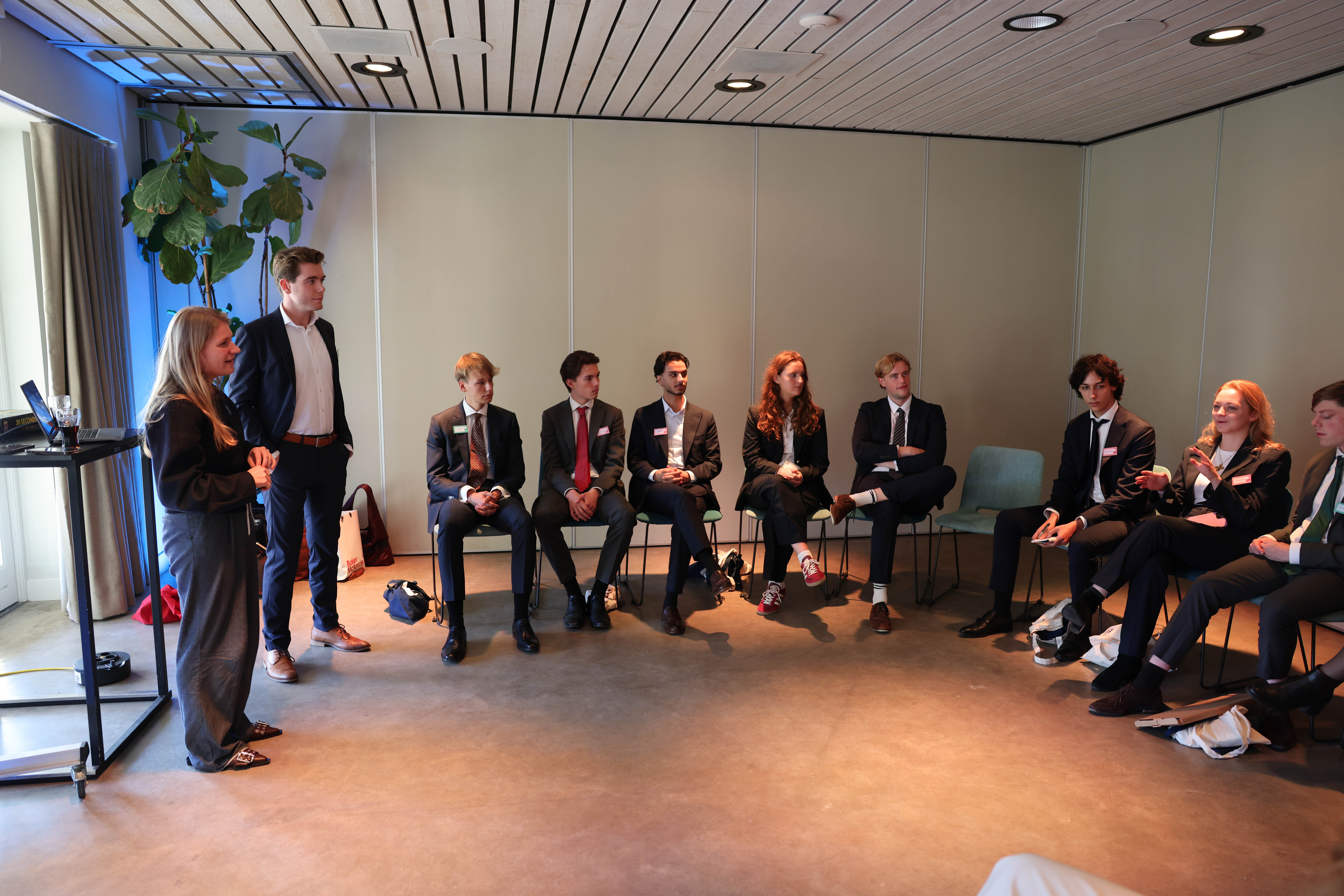 De dag eindigde met een borrel en een viergangendiner, waarbij studenten per gang wisselden van tafel, hét moment waarop alles samenkwam. Ieder jaar is dit diner weer een logistieke puzzel die ook nu weer soepel verliep. De sfeer was warm en energiek, en er ontstonden waardevolle connecties. Precies de afsluiter waar de organisatie op hoopte.