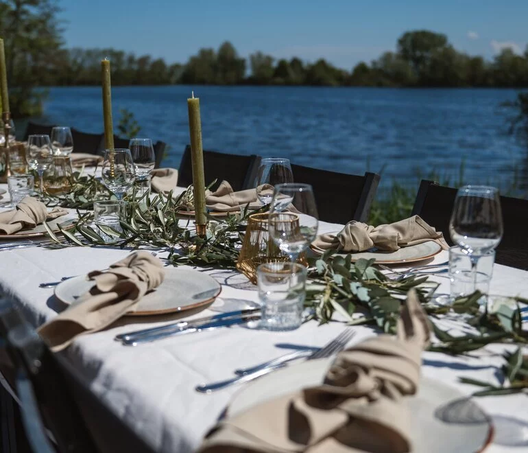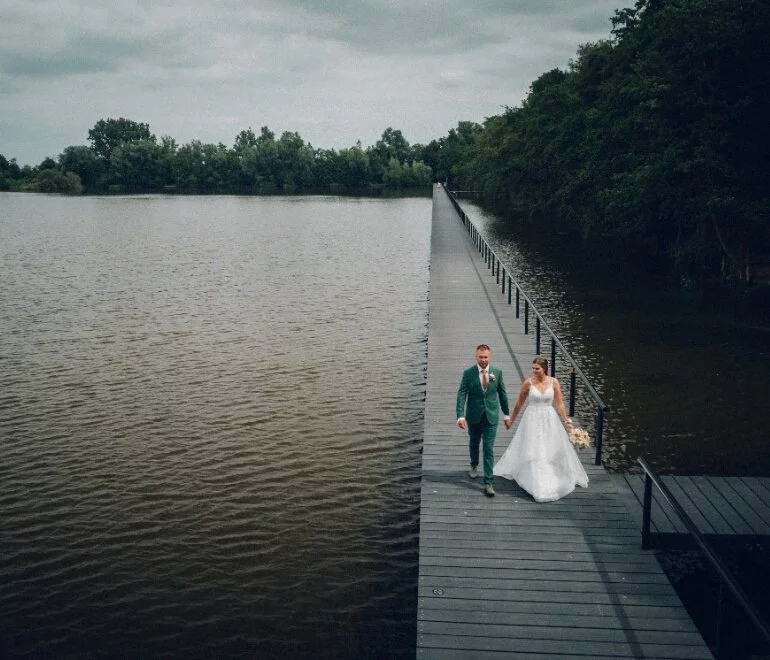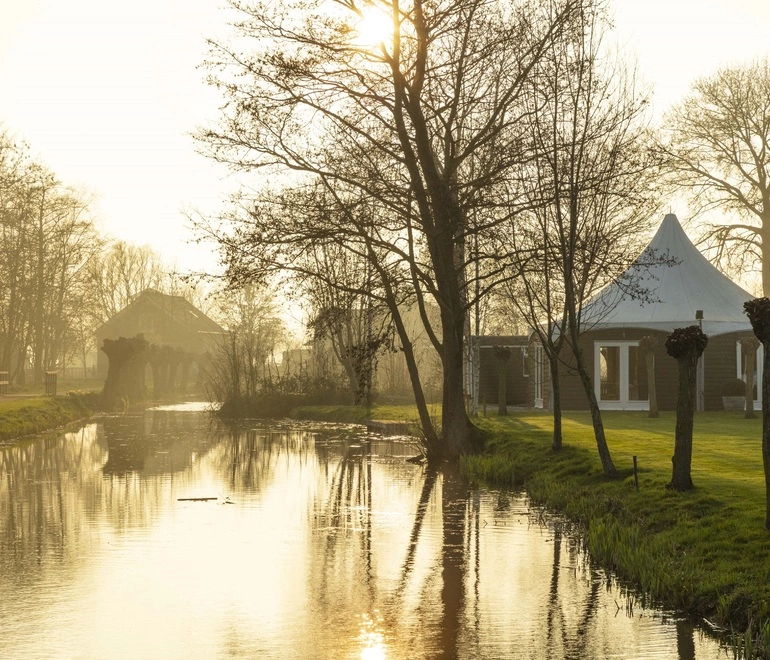 Door de omvang van het terrein en onze vele beschikbare ruimtes is het makkelijk om een compleet verzorgde bruiloft op één plek te organiseren. Houd bijvoorbeeld jullie ceremonie op één van onze mooie terrassen aan het water en ga vervolgens met het gezelschap naar een ander terras om te proosten op het nieuwe huwelijk. Ondertussen buigt onze keuken zich over het feestmaal dat volgt na de borrel in het restaurant. Na het eten is het tijd voor het grote feest om het nieuwe huwelijk uitbundig te vieren. Overnacht vervolgens met de gasten in één van onze romantische Veldhuysjes, met natuurlijk een Veldhuysje dat is ingericht als bruidssuite.