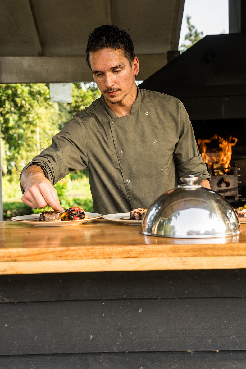 Ons concept draait om het koken vanaf onze Zuid-Afrikaanse Braai. Door het grillen op houtskool verspreiden zich heerlijke geuren over het terras waar het water je van in de mond loopt. En ook nu spelen streekproducten nog steeds een belangrijke rol. Daarbij worden de gerechten verrijkt met kruiden en/of groentes uit eigen tuin.