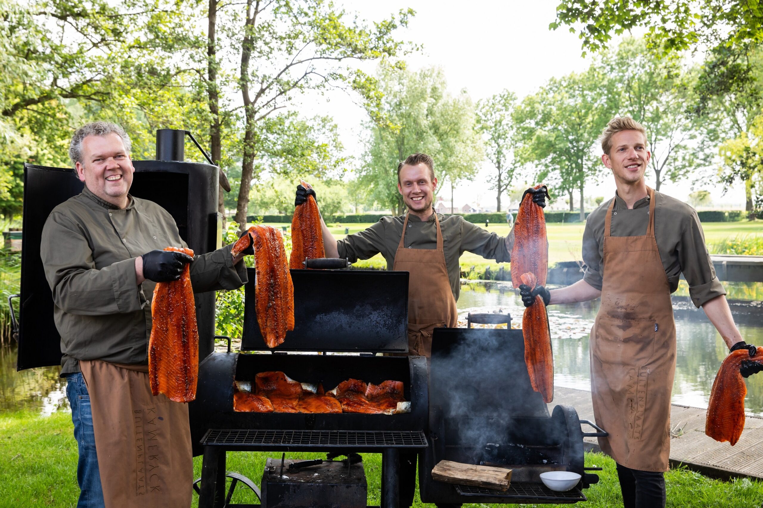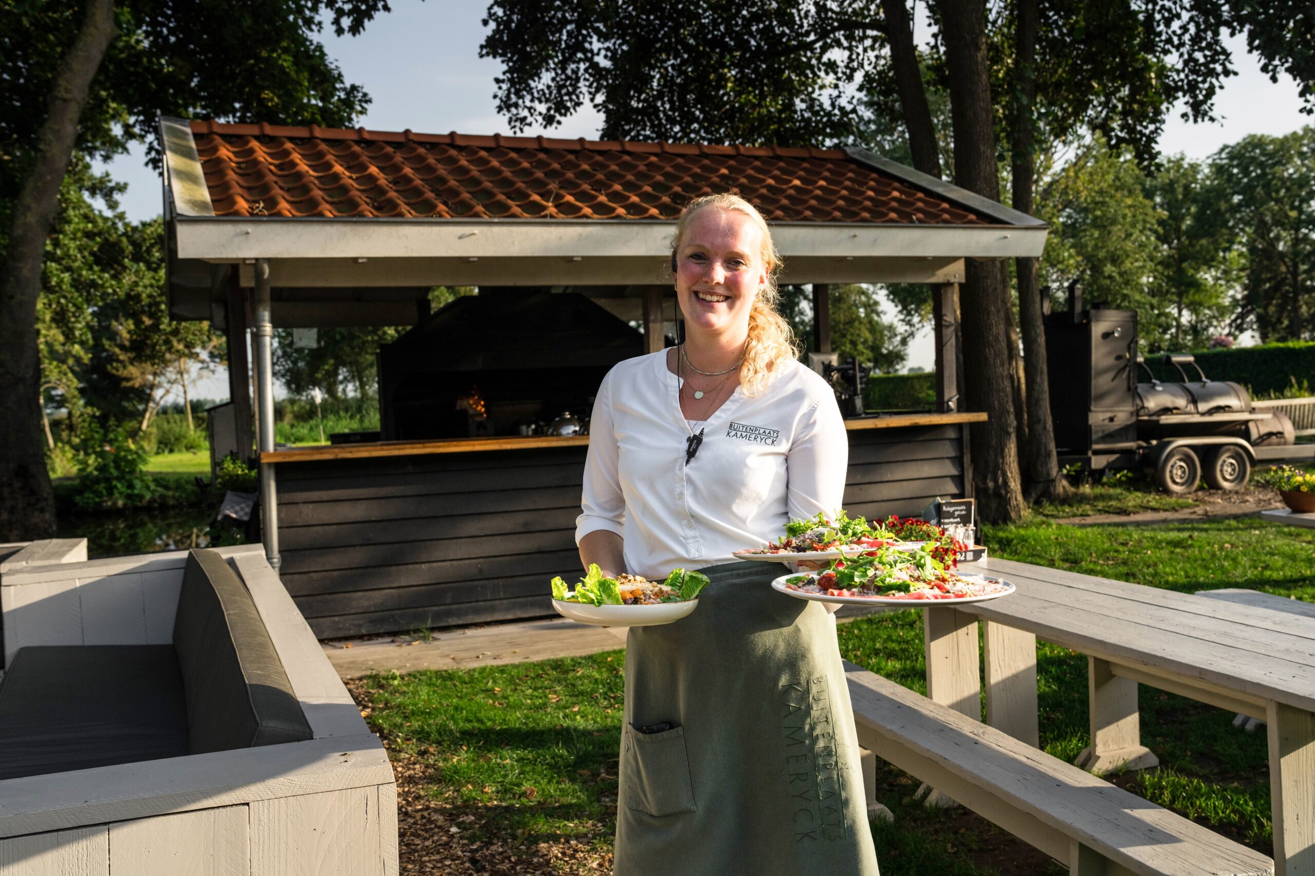 Op het ruime terras kijk je uit over het water en de vuurplaats, waar de keukenbrigade heerlijke gerechten bereidt